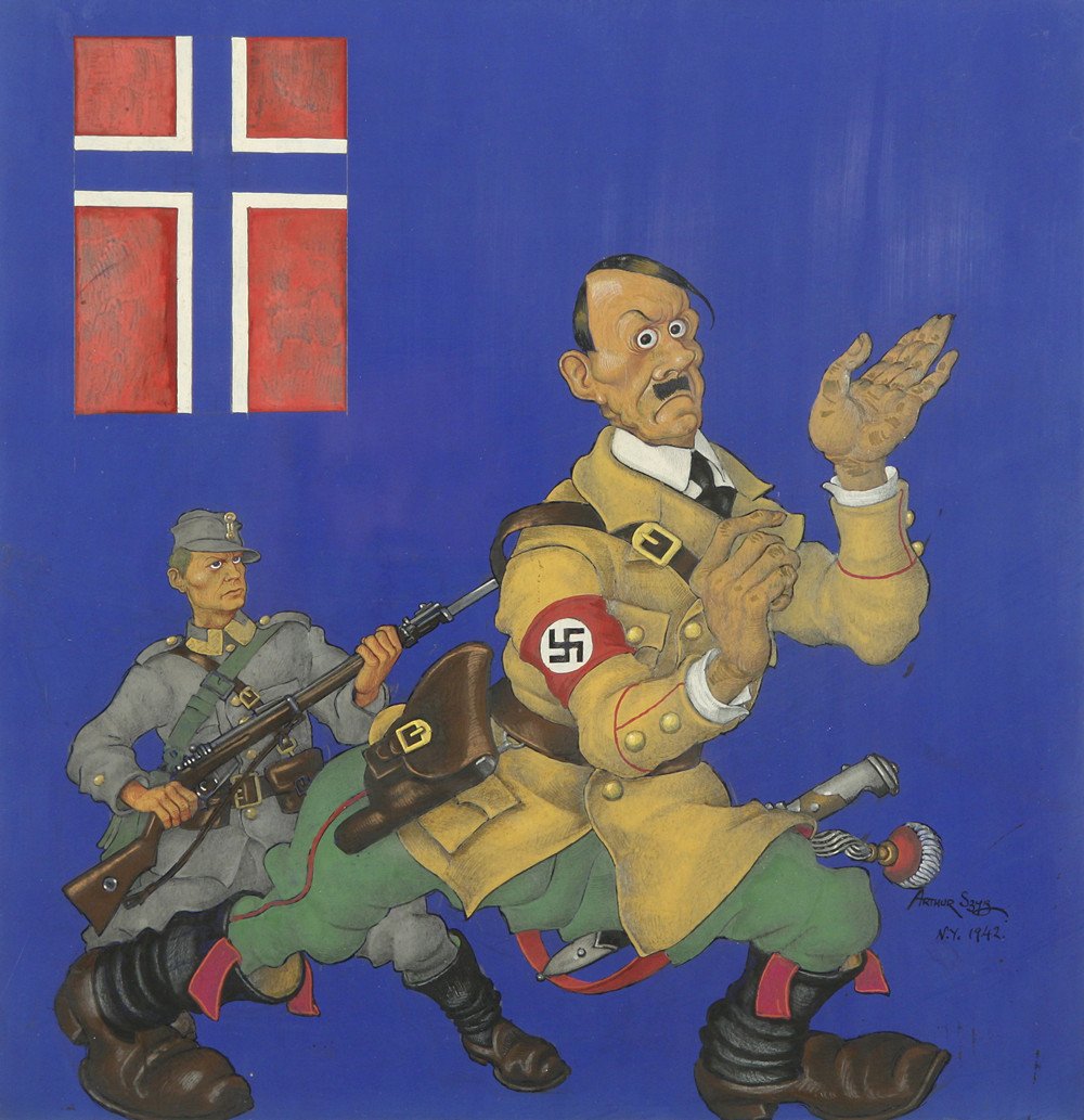 During WWII, Polish-Jewish artist Arthur Szyk’s highly-charged, acidic caricatures of Axis-power leaders in his trademark illuminated manuscript style, reportedly enjoyed more popularity than pin-up girls on the walls of American military bases. With an alleged bounty issued by Hitler on his head, Szyk emigrated to the U.S. in 1940 with the sole assignment of “popularizing the struggle of the British and Polish nations with Nazism in the New World.”