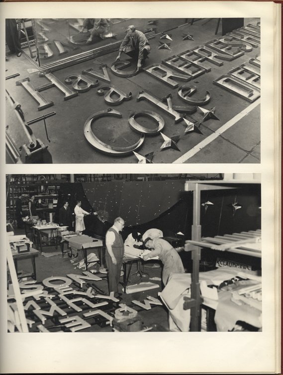 The final image in the book, the only one in colour, shows the sign lit-up: