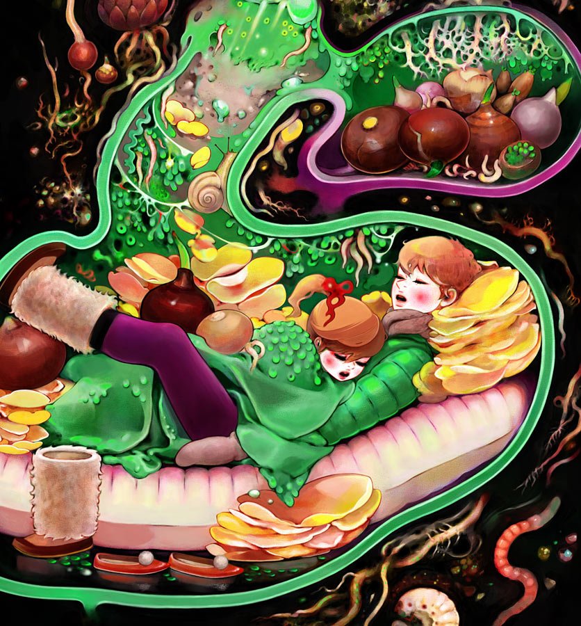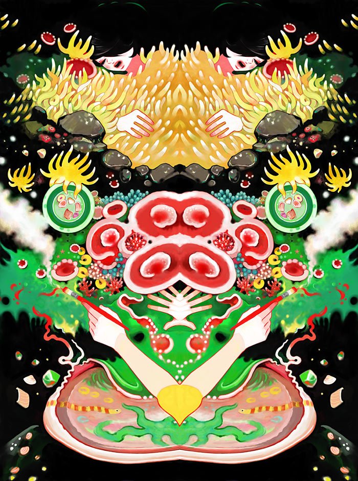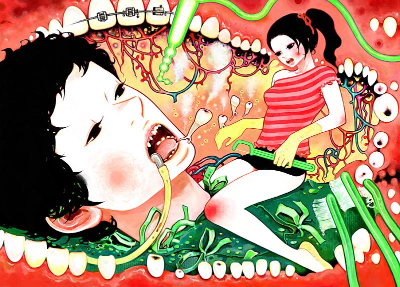 Minchi is a Japanese artist who's work has a very anime/surreal method.  Born in Kyoto, Japan. Lives and works in Hyogo, Japan.