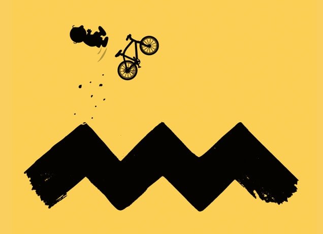 Get this for your shy friends with bad luck or for yourself. I haven't seen a Charlie Brown/Peanuts shirt in a long time that caught my attention...I guess the egg head Charlie flipping off his bike did it for me....Good Grief!