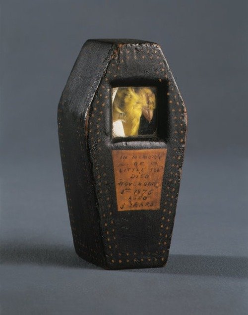 “This particular yellow canary was obviously a favoured pet as well as a working bird. Inscribed with the legend : ‘In Memory of Little Joe. Died November 3rd 1875. Aged 3 Years’