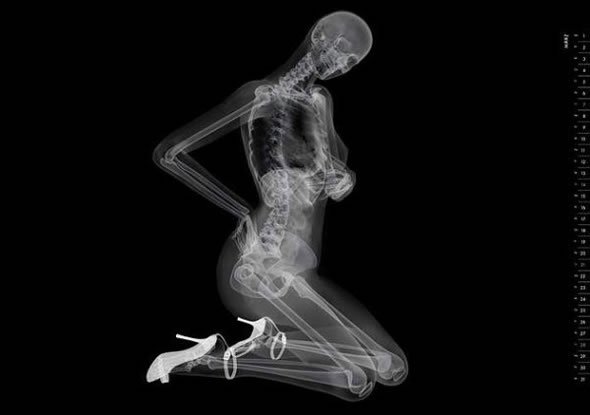 IZO (medical imaging and radiograph service) is giving out unique x-ray pin-up calendars to their clients (many of which are doctors). The goal of the project is to break free of taboo, i.e. showing the traditional, sexy pin-up in all its glory and details.