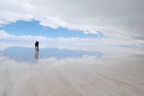 World's largest salt flat is located at Salar de Uyuni, Bolivia. During the rainy season, the water turns into world's largest mirror.