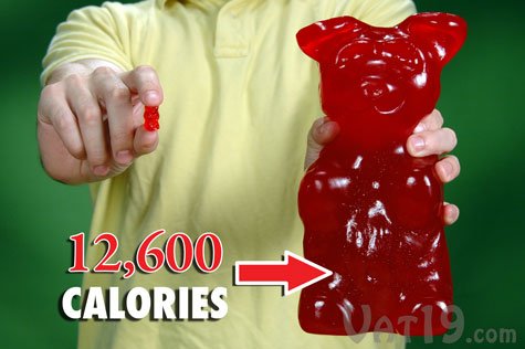 The World's Largest Gummy Bear is not intended for one man to eat in one sitting. If eaten in appropriate amounts, the WLGB probably won't kill you :).