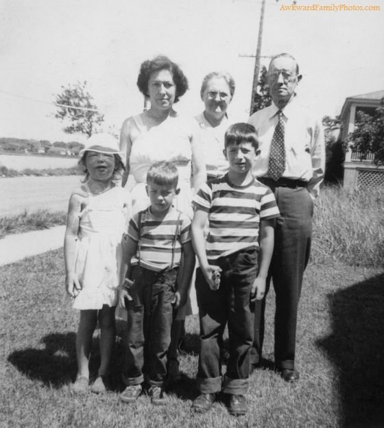 “This photo was taken in 1950 while our family was on a summer vacation at the Jersey Shore. I am the lovely creature on the left with a horrendous case of poison sumac and look like a creature from outer space. My two brothers seem only intent on shooting the photographer, and my mother, grandmother and grandfather seem unfazed by this weird person in the photo with them. How did I ever allow anyone to take my photo looking like this? I was just 6 years old and probably didn’t think twice about it at the time.”