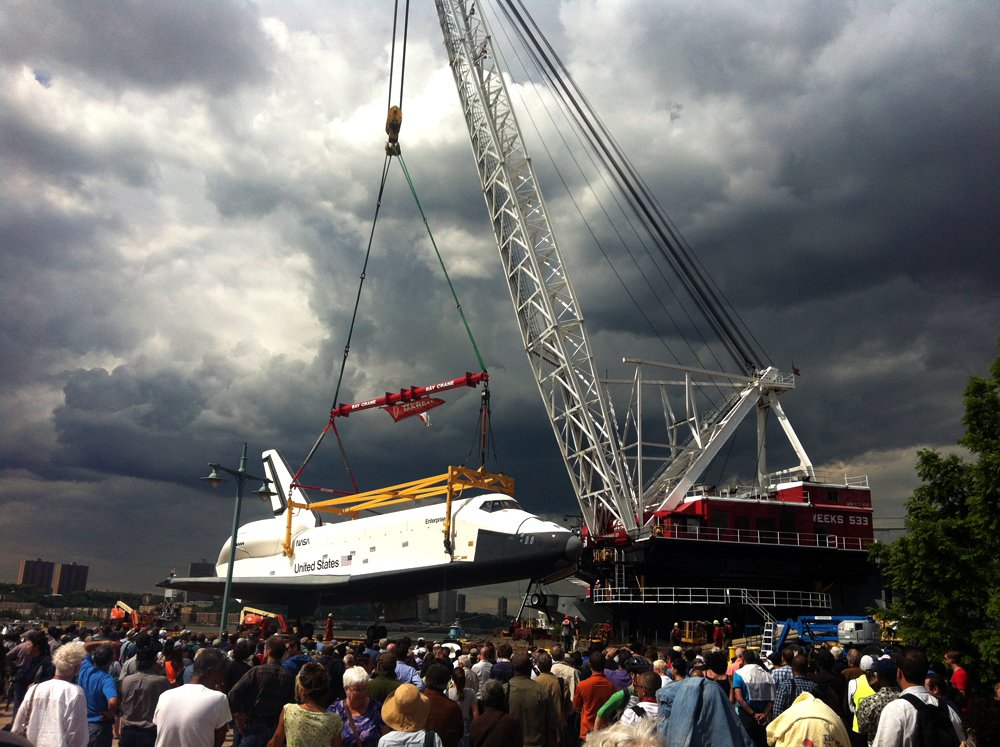 for the space shuttle enterprise as it begins its quick trip to the deck of the USS Intrepid