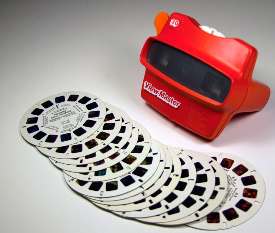 Its made out of plastic and has a transparent part that kinda works like the ViewMaster
