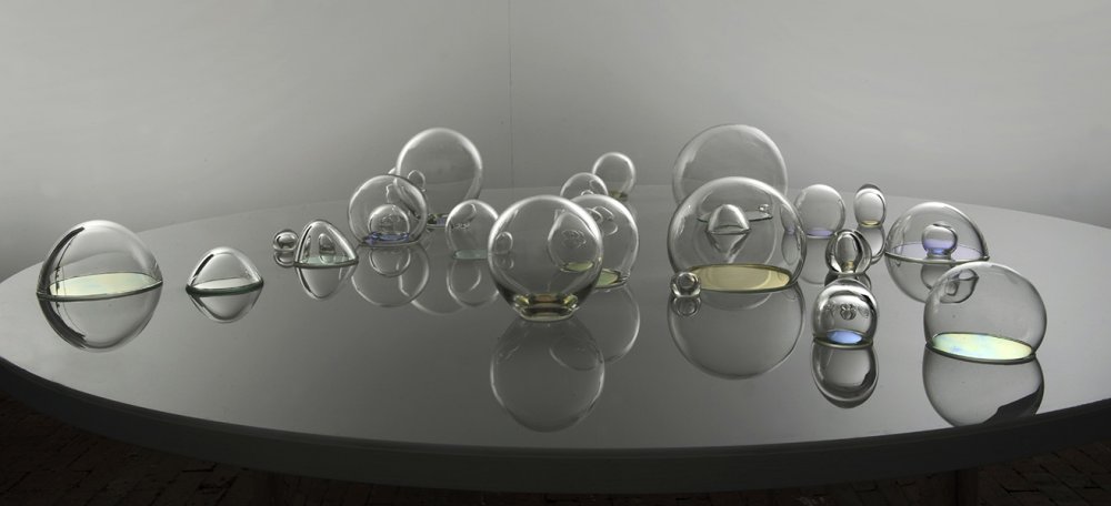 Using highly innovative materials such as NASA ’s dichroic glass, Bubbling Up examines the fragility of the Earth’s atmosphere and ecosystems that appear like a bubble, on the constant verge of collapse. Sometimes fickle and ever elusive, Bubbling Up highlights the ongoing need to quantify ecological concerns. Every day there are thousands of toxic gases bubbling up in the atmosphere. In the age of heightened ecological awareness Bubbling Up poses the question, is it possible to view a beautiful sunset and not wonder if the sky is set ablaze with such unique colours because of the toxic pollutants in the air reacting with the atmosphere? In the space that surrounds us, what is bubbling up?