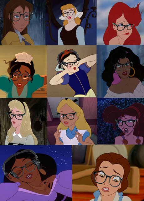 See, even Disney princesses know how to rock the geek-chic look! It’s remarkable how a simple pair of over-sized frames can quickly transform Belle, Ariel, Snow White, Alice and her other Disney pals into hip, in-the-know cool kids. So funny! Get Snow White, Ariel + Alice’s Look for $88 w/ RX:  The Jesse