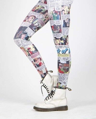 These are pretty geeky and sexy all at once. There is nothing wrong with that. I'm not sure what comic strip is printed on these tights since I'm no expert. But, I will say I would like them with Spider-Man or Wonder Woman please?