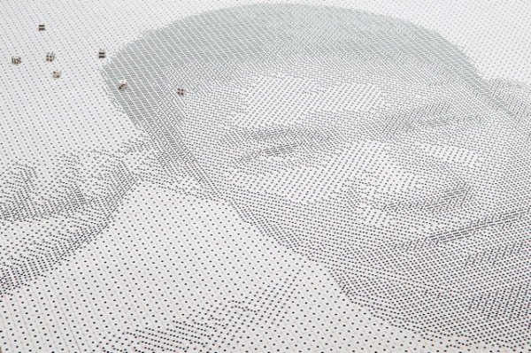 Canadian artist and designer Tobias Wong died last year at the young age of 35, or more specifically, 13,138 days. In tribute, his friend Frederick McSwain created this immense portrait of Wong entitled Die using 13,138 dice as part of the BrokenOff BrokenOff exhibition at Gallery R’Pure in NYC in memoriam to the artist during NY Design Week. McSwain via Core77: