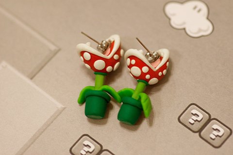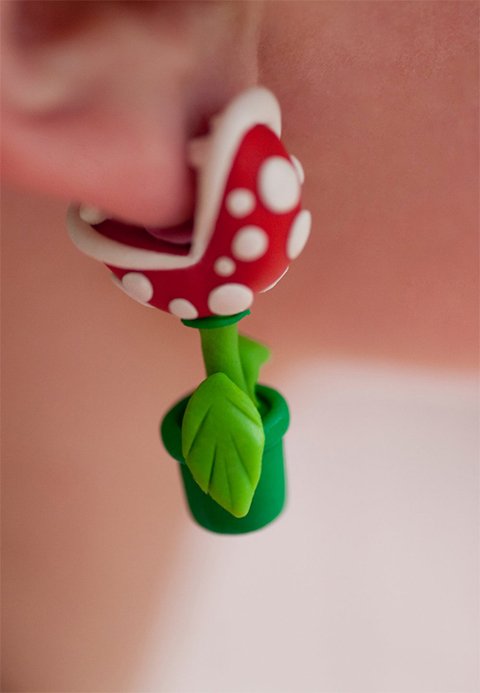 Super awesome accessory for any Mario fan! This Piranha Plant earring set made of polymer clay will sure put a bite in your day! Wear these anywhere and your sure to get a second look! Piranha Plant earrings have the appearance of having quite the grip on the ear. That’s a scary thought but don’t worry these adorable earrings will cause you no pain, maybe tears of joy though! Buy here.
