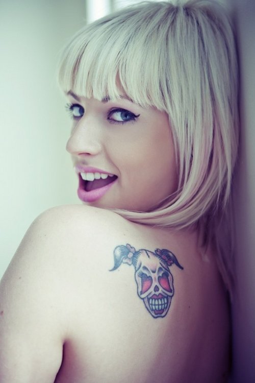 I got my first tattoo when I was 18. A girl skull on my left shoulder blade and a boy skull on my right.