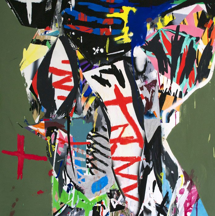 Jel Martinez's paintings are inspired by the methodology of vandalism removal. Martinez observes how metropolitan clean-up crews destroy one art form while creating another. The artist constructs his paintings by combining earlier influences with a figurative style of painting referred to as "buffs". "Buff" creates contemporary patterns that result in a post-modern aesthetic. Through his experience and study of modern day contemporary culture, he applies a new meaning of expressionism to his work. Martinez's paintings are a recreation of multilayered walls that are seen in urban landscape.