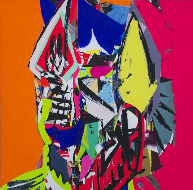 His work makes you think of so many well-known painters yet the integrity of his work shines above all. When looking at his work on the computer screen, it is very difficult to determine whether his paintings are digital, collage or what. But, after much research they are collaged paintings with mixed media and photocopies as well. Below is a quote from an interview he did with Sick of the Radio.