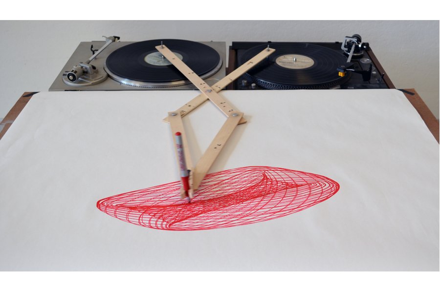 The revolution of the records create drawings that serve as a markers of temporality. The drawings also speak to the idea of the editionable print through their ability to be replicated using domestic materials.