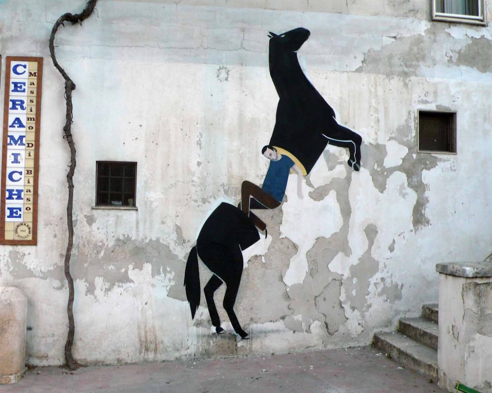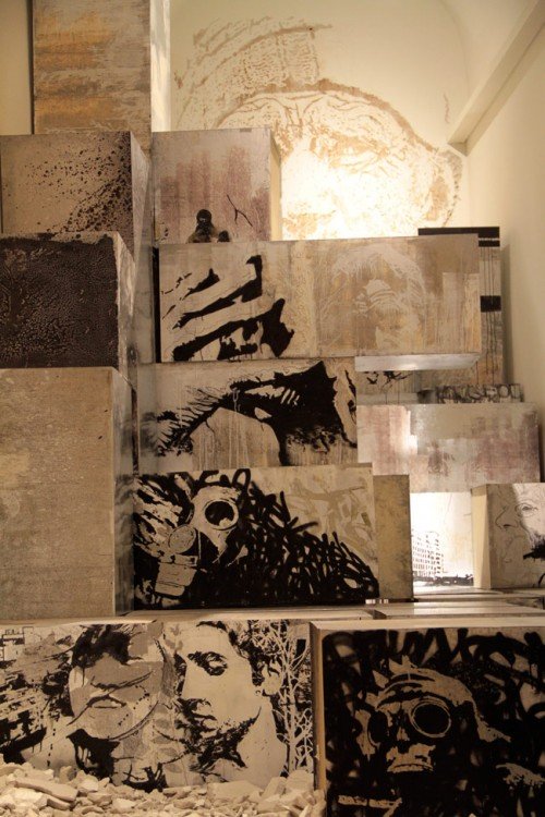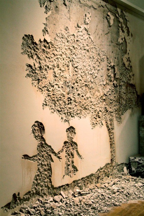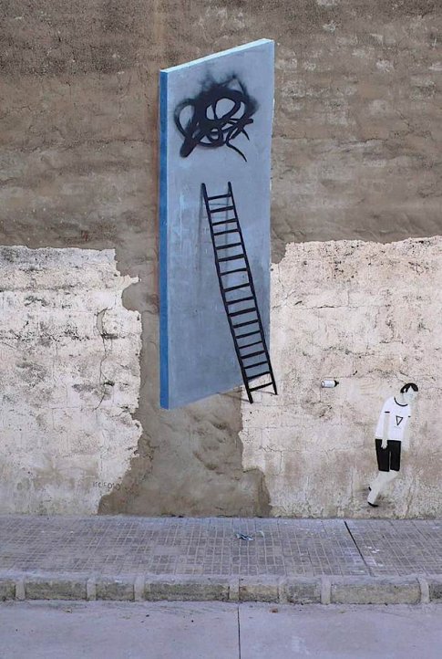 These wall works by Escif are filled with a graceful and simplified approach that is moving and refreshing. You can tell this street artist lives true to his voice. This is his visual language and lifestyle. The pieces on the older walls are the most pleasant to the eye. Learn more about this street poet at his FLICKR page.