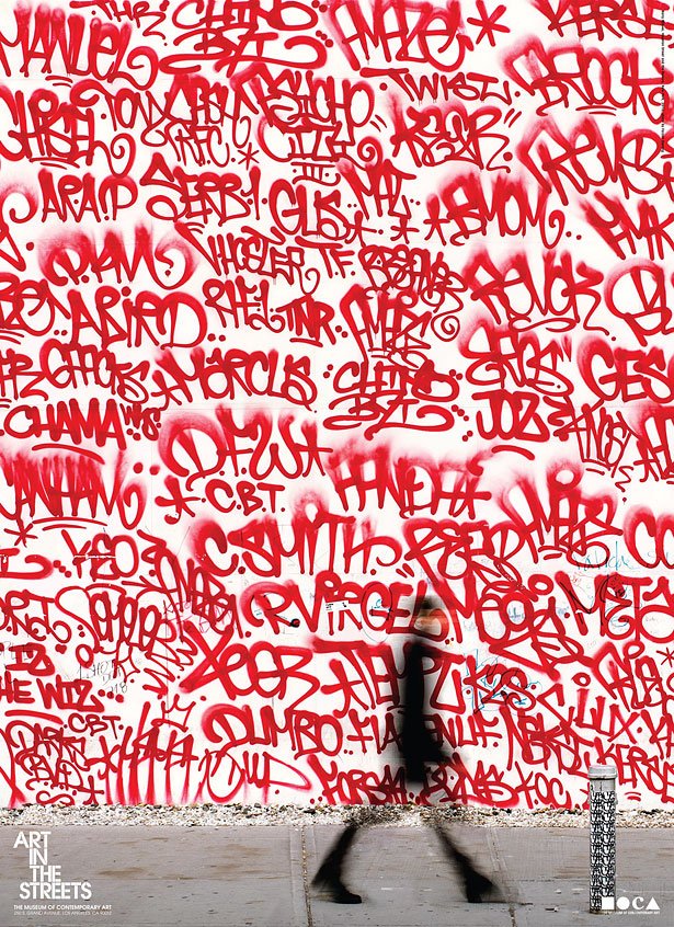 Art in the Streets is the first major U.S. museum survey of graffiti and street art. Curated by MOCA Director Jeffrey Deitch and Associate Curators Roger Gastman and Aaron Rose, the exhibition will trace the development of graffiti and street art from the 1970s to the global movement it has become today, concentrating on key cities such as New York, Los Angeles, San Francisco, London, and Sao Paulo, where a unique visual language or attitude has evolved. The exhibition will feature paintings, mixed media sculptures, and interactive installations by 50 of the most dynamic artists and will emphasize Los Angeles's role in the evolution of graffiti and street art, with special sections dedicated to seminal local movements such as cholo graffiti and Dogtown skateboard culture. A comprehensive timeline illustrated with artwork, photos, video, and ephemera will provide a historical context for the work.