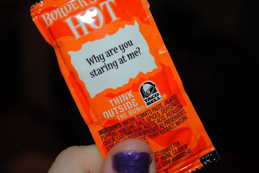 I haven't eaten fast food or Taco Bell for some time. But, I recently noticed Taco Bell puts little jokes or not so funny ones on their sauce packets. I guess they want their customers to feel better about the crap they are about to eat.