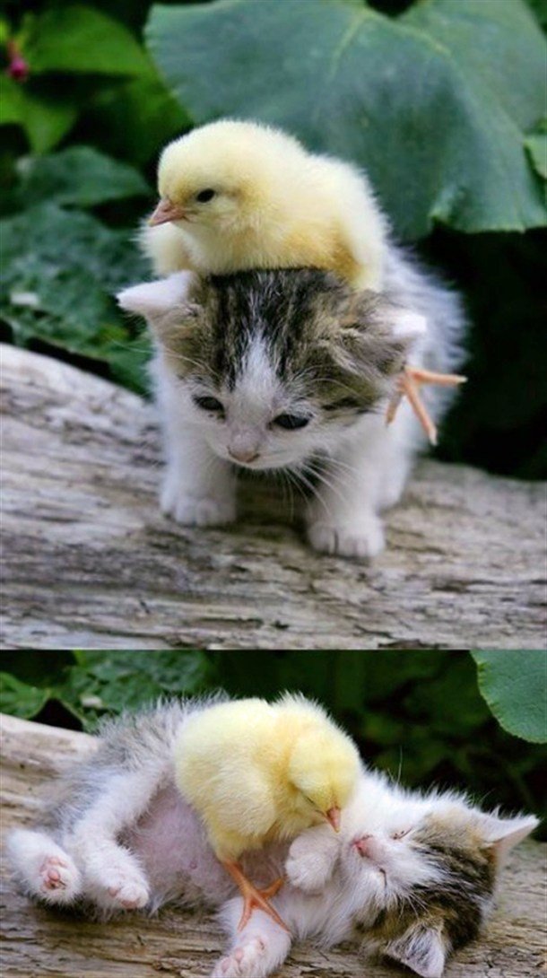 And in a twist of fate the chick takes down the kitten. The little chick ended the kittens career before it even started!