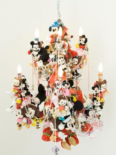 Korean artist Kim Songhe creates these quirky Disney-inspired chandeliers using old dolls, toys and stuffed animals. Most of her work is hand crafted, using natural and recycled materials that some people may consider garbage or junk. Of her work she says, " I want to breathe new life into old discarded objects.