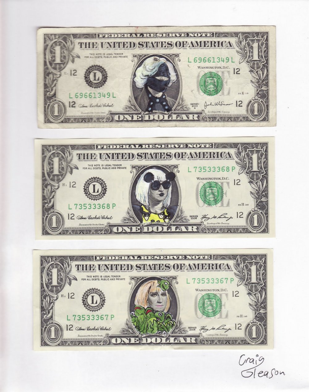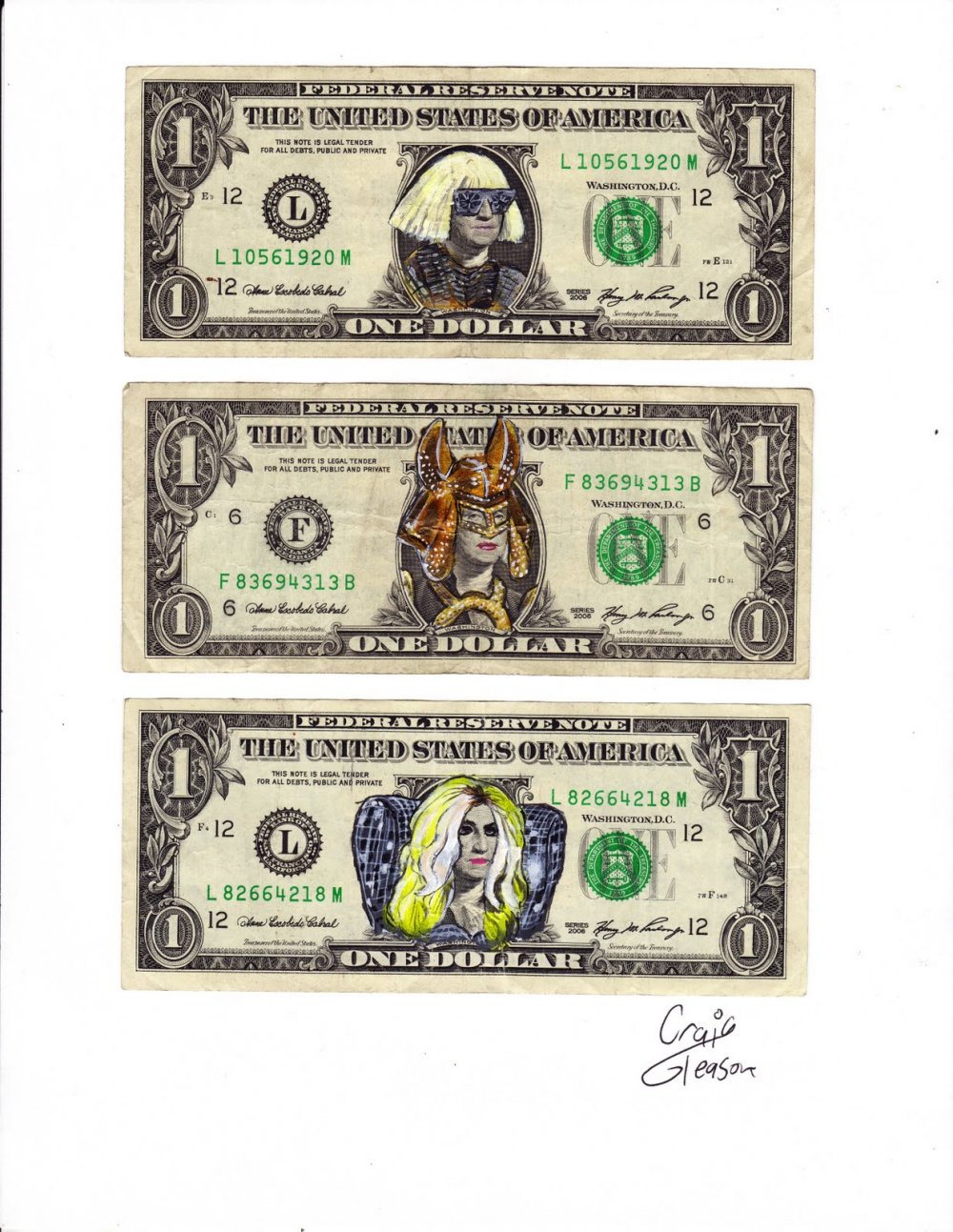 Nothing better then spending money, and in Gleason's case drawing on Washington...making him look like a Lady Gaga.