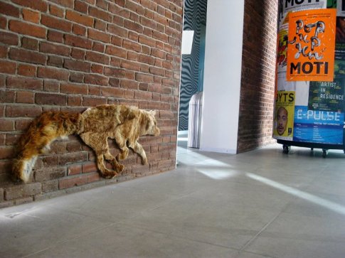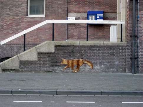 What do these image do to you? When I saw these images in my Fb friend's wall, I started to automatically re-connect to the Universal Intelligence that is usually hidden below my conciousness during my daily life in the city. I took some time picturing the scene of animals were living wild in nature before human civilization a long long time ago. Ecologically it was a perfect world...... This fur belonged to living creatures once, then used for human adornment and now it almost looks like they are back to life again with the brilliant touch of the NEOZOON's visions, collaborating with urban elements. This is one of my favorite street art moments of all time.