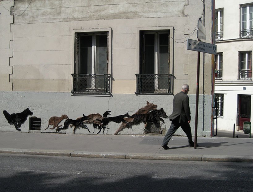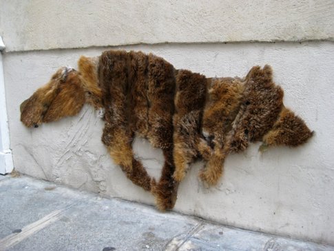 NEOZOON is a collective of female street artists that use re-porposed fur materials and create wall art.