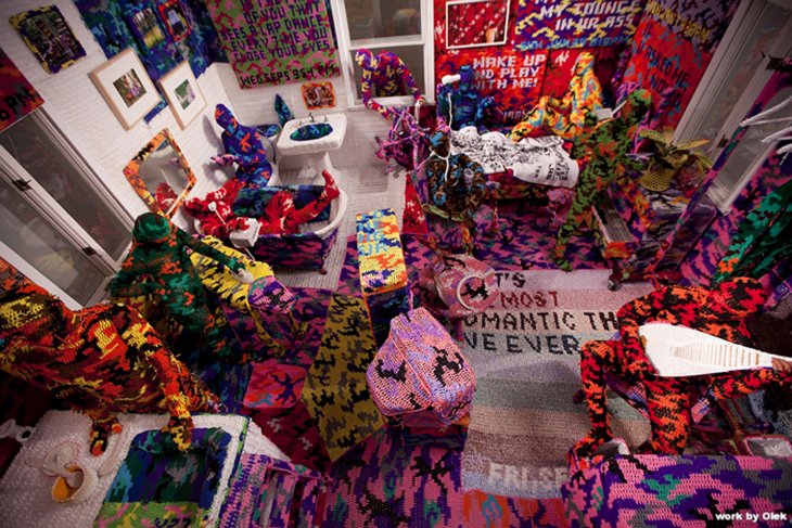 Olek now must remain in London and will return to court on December 22, after which she may be able to speak more openly about the case. In the meantime the artist is preparing for her show at Tony’s Gallery in London scheduled to open on January 26 (updated date),'12. Olek is asking for donations to help pay her mounting lawyer bills. you can donate to the artist though this web site- Olek’s Appeal by purchasing photographs of her crocheted creations. source: HYPERALLERGIC