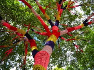 examples have been recorded as early as May 2004 in Den Helder, Netherlands. In the U.S., But the movement was created in Texas knitters in 2005 used their leftover and unfinished knitting projects, but it has since spread worldwide. - wikipedia