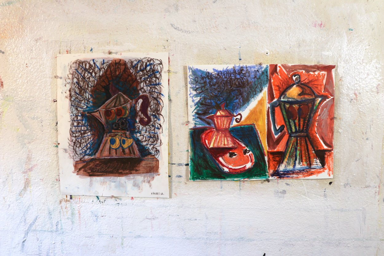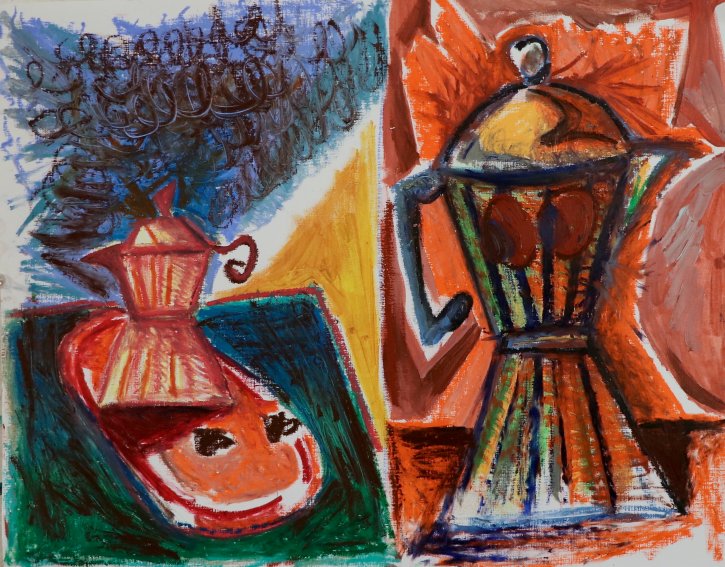 Here are some oil pastel explorations from last year. I was thinking of objects (coffee pots) and adding human real life emotions to them, however that would look - I was trying to play with that idea.