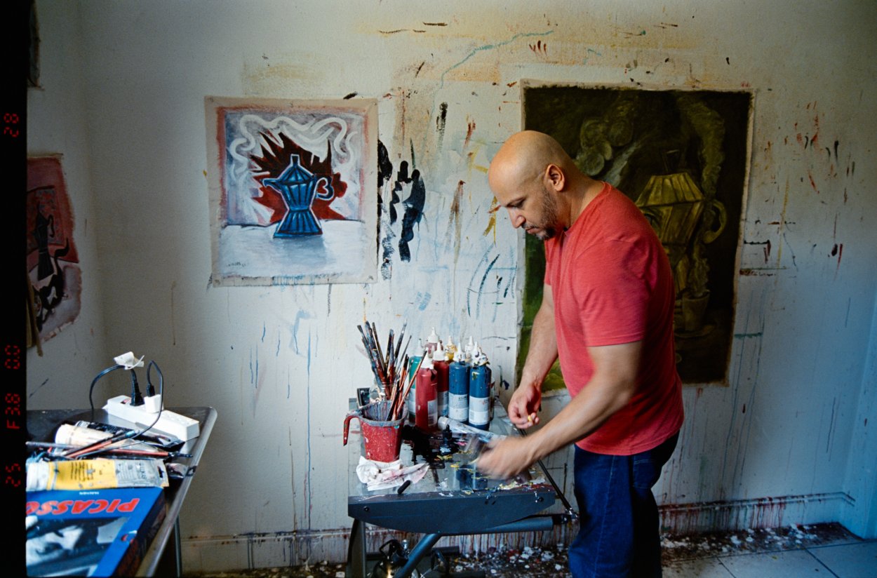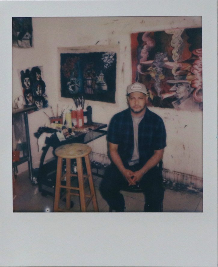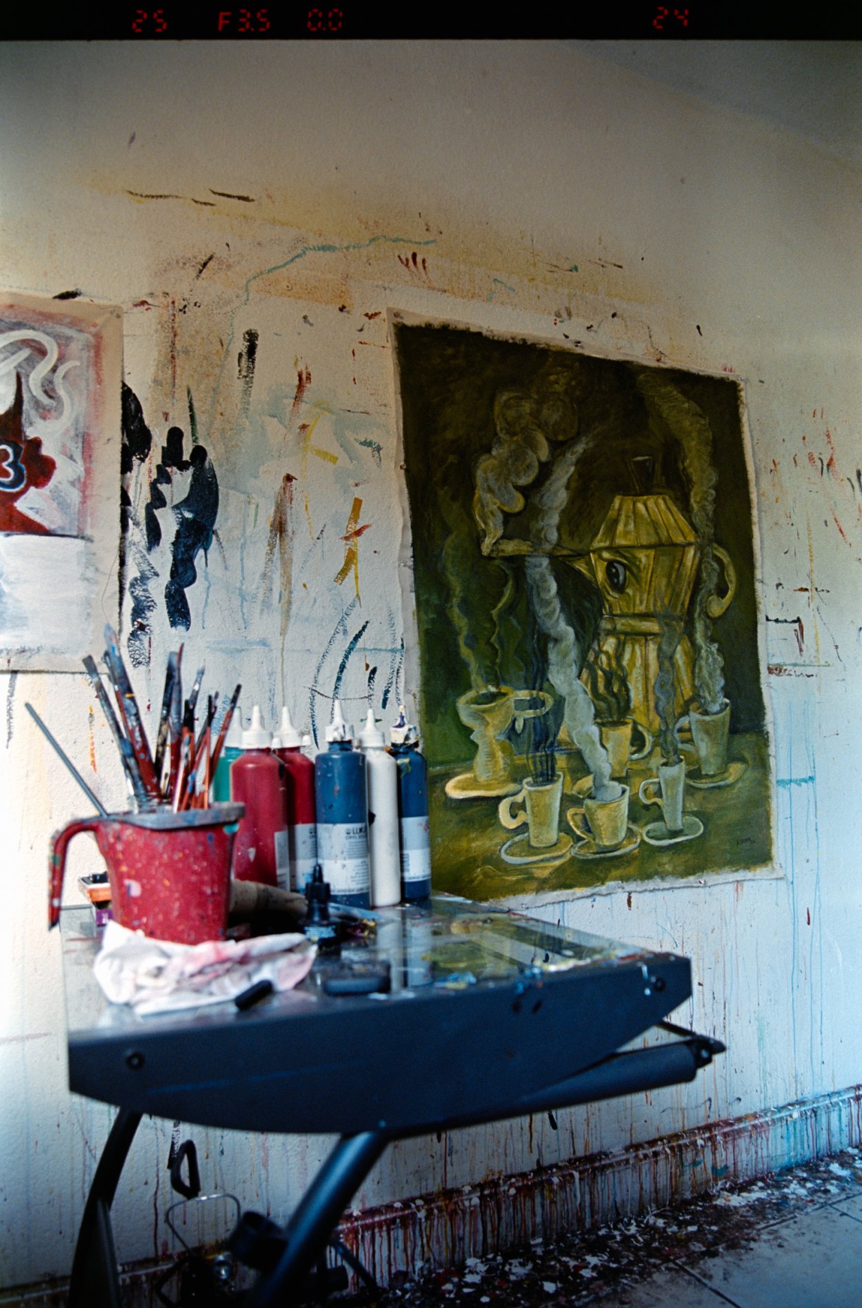 My older brother bought me a polaroid camera for my birthday and these were the first two images taken. You can see the painting "Circumstantial Evidence" as I was working on it.
