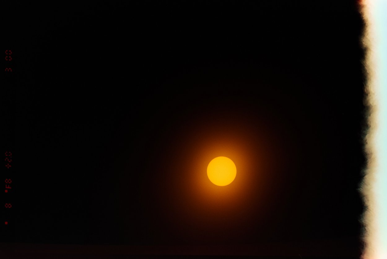 I picked up a solar filter for my lens. I'm getting ready for the total solar eclipse this year, April 8th 2024. This is my first test on film. It came out pretty good I think. It' overexposed, I have another shot that shows a sun spot but this one looks better.