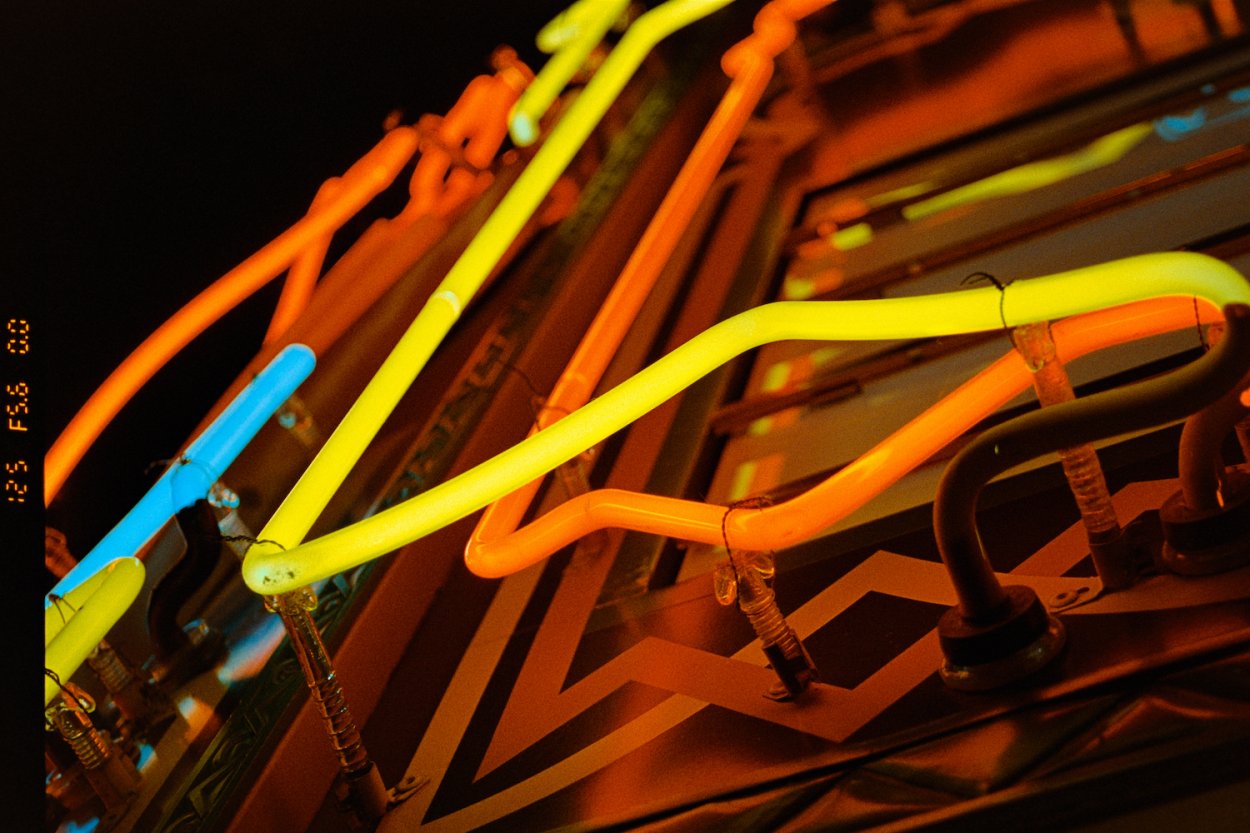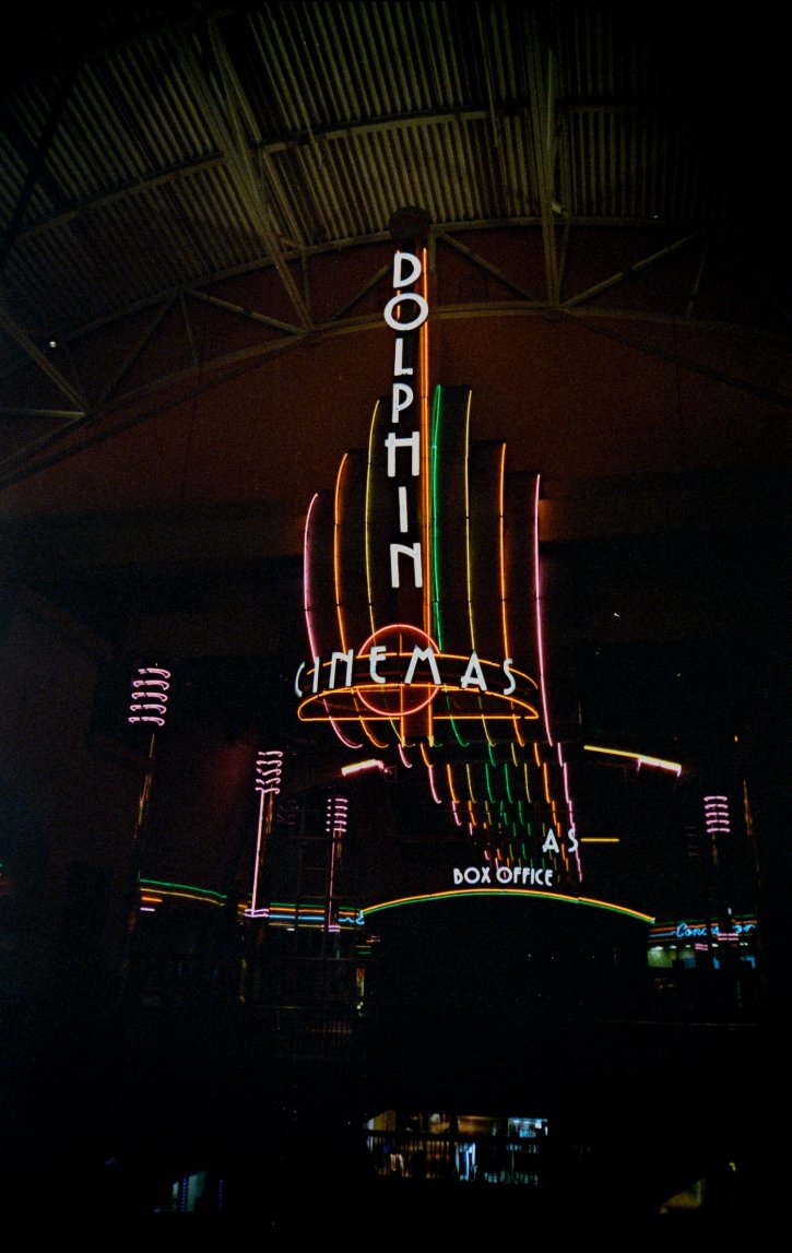 DOLPHIN MALL CINEMA NEON ON KODAK VISION3 250D CINEMA MOVIE FILM SHOT AS STILL PHOTOGRAPHY, NOVEMBER 2023.