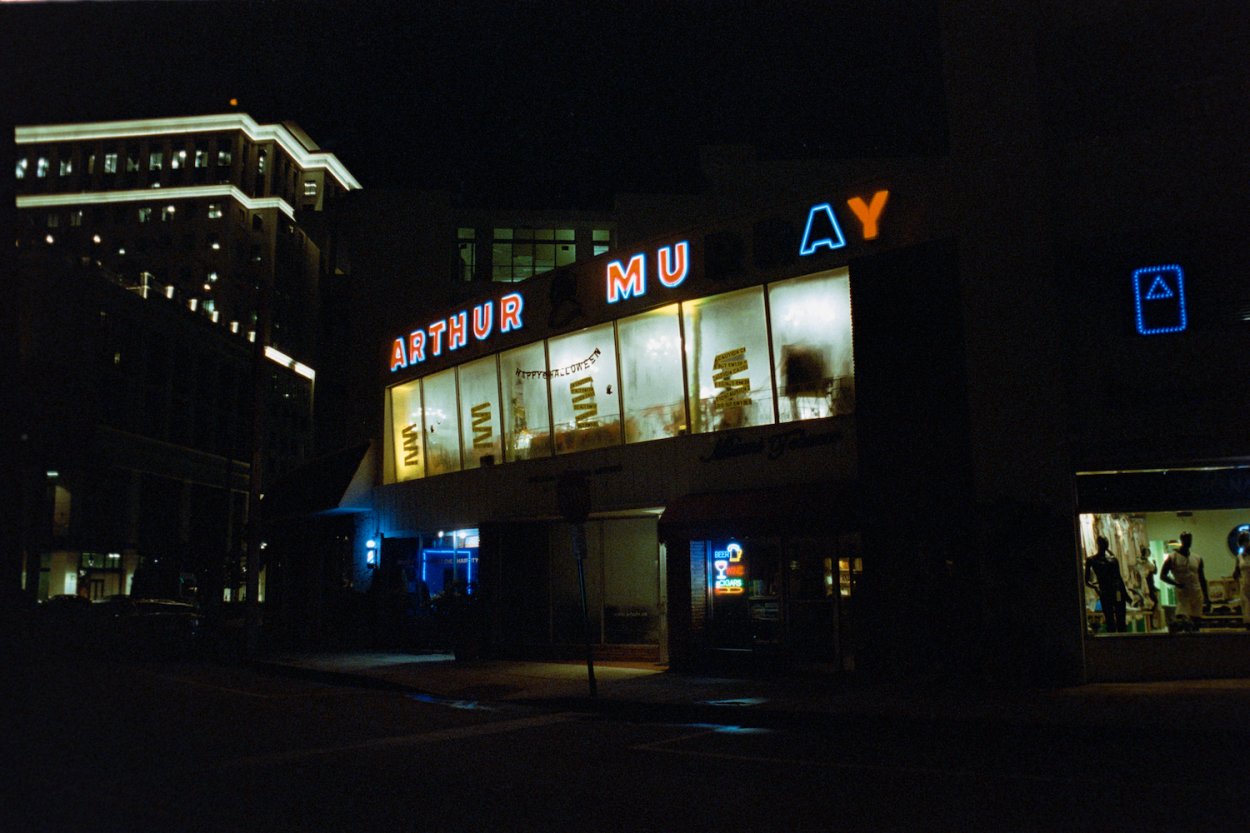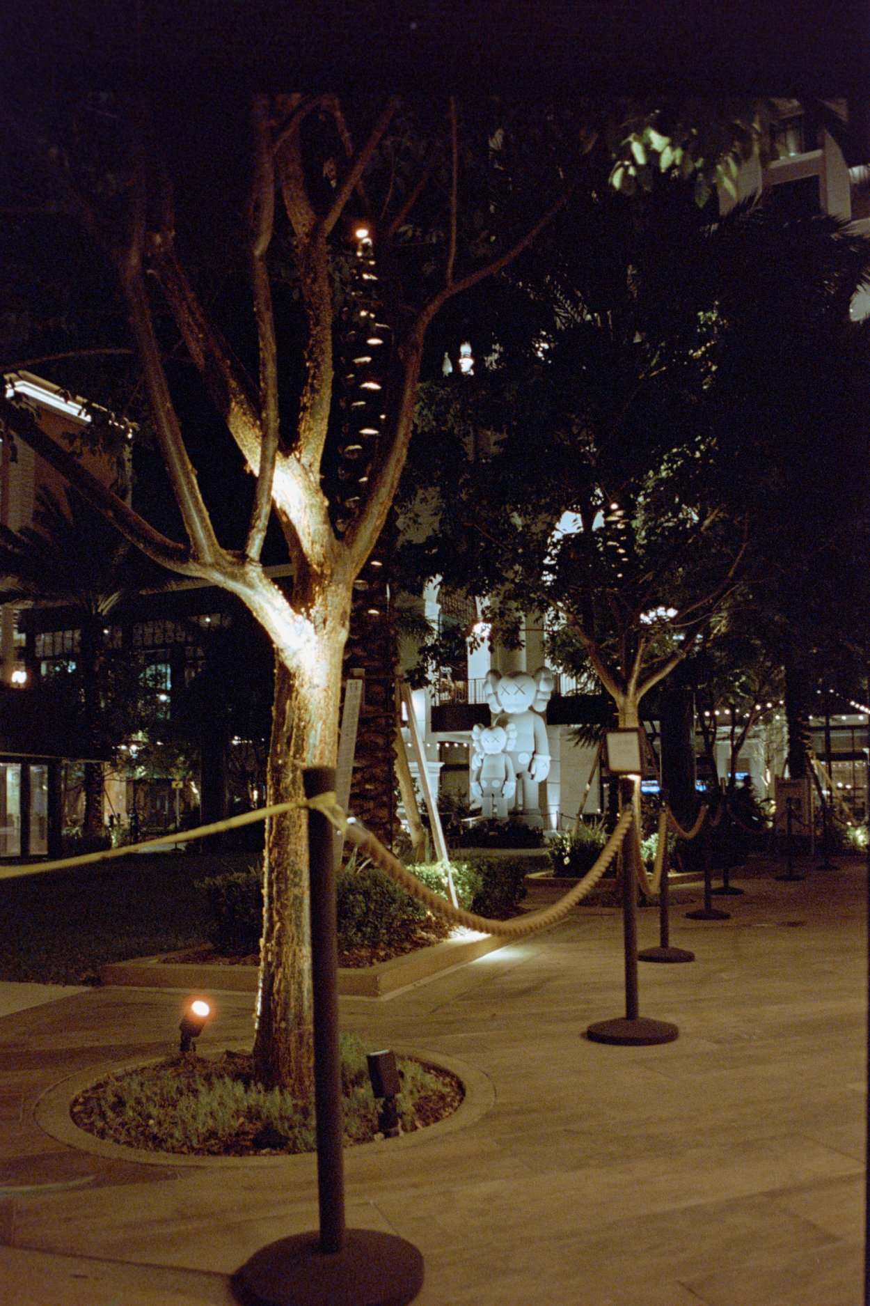 I went at night (8PM) to check out a new sculpture from the artist Kaws at the Plaza in Coral Gables. Unfortunately it was sectioned off with those VIP rope things. I couldn't get close and could only photograph the back of it. I then went to the second floor and a security guard told me I could not photograph it with my camera only my phone...