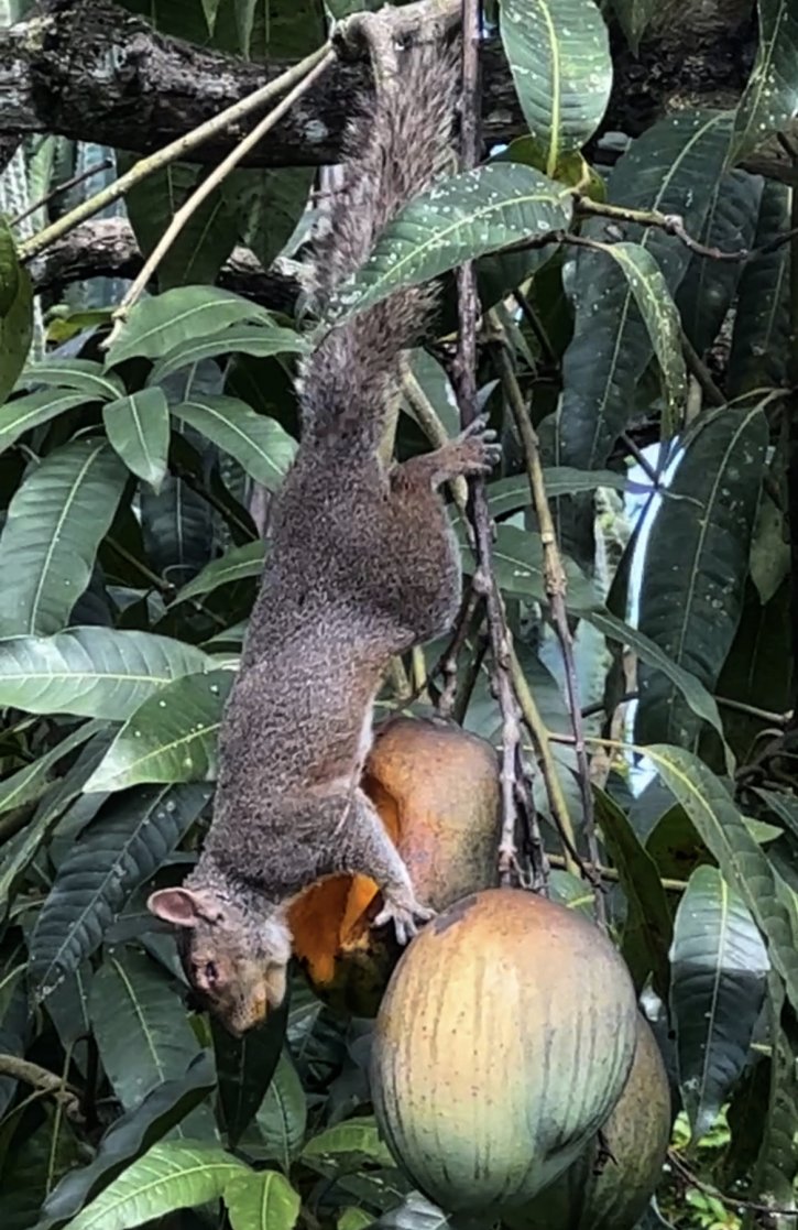 I looked out my window and saw this upside down squirrel eating mango. I took a quick photo on my iPhone then about a minute later on my Nikon film camera.