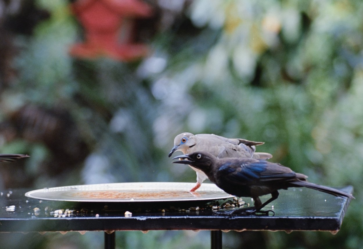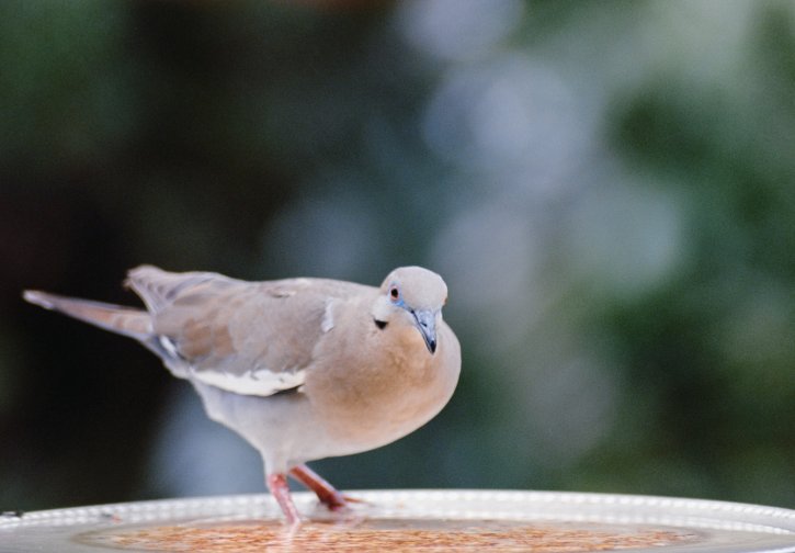 Now that I realize the beauty of the White Winged Dove, that what they are called, I started studying them.  I noticed them interacting with other birds and noticed how much smarter they are and their heads is huge in comparison to most other birds in my back yard.