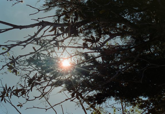 I took this photo not realizing it looks like stock photography. Haha! Also, didn't notice the bird flying by until after I developed and scanned the film. I photographed this on Cinestill 400D film. Light halation on the trees too.