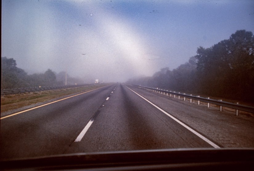 Now this is something. It was a foggy morning and I saw a gray (as in Black and White) rainbow. No colors... weird. I had my film camera, this was shot with slide film. Kodak Ectachrome 100 with my Nikon F6.