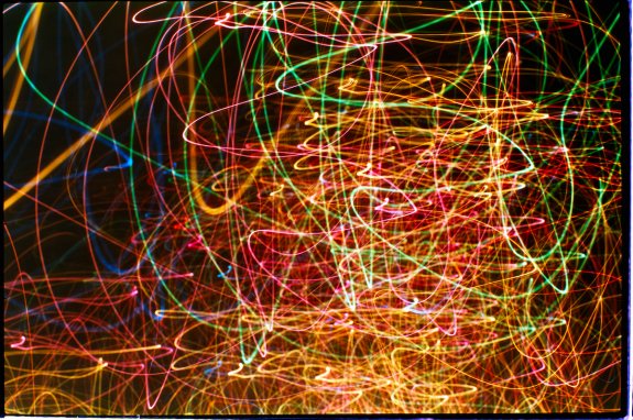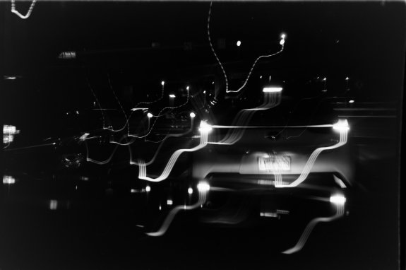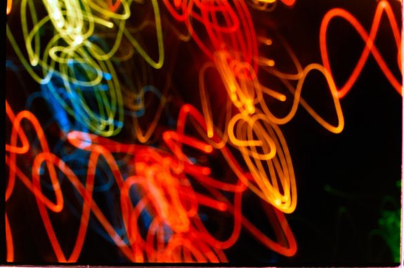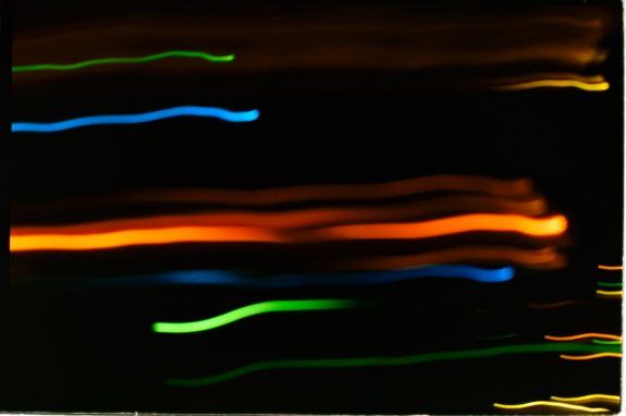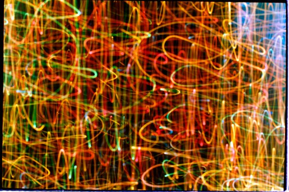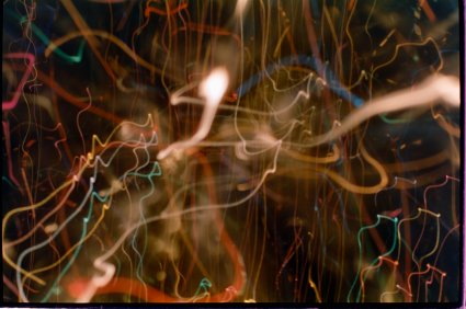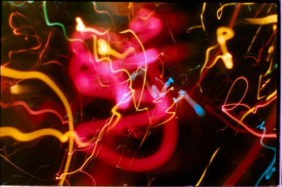 Jackson Pollock style motion light trails on Cinestill 50D film.