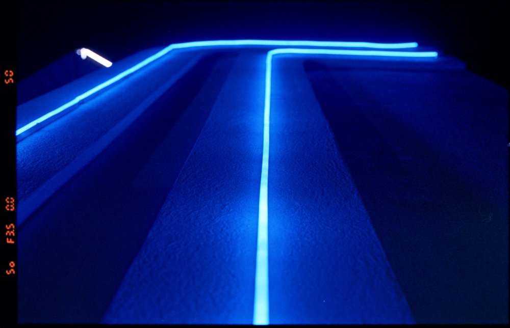 Line light halation on Kodak Portra 800 film.
