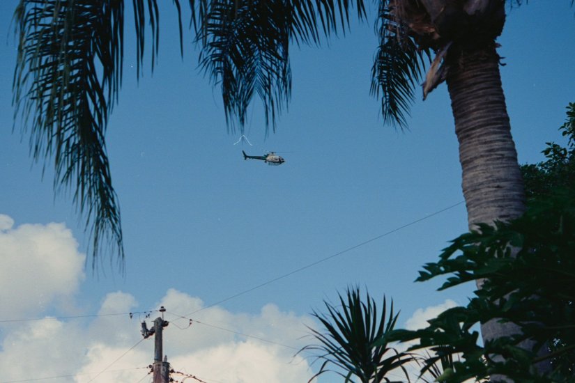I watch the helicopter circled my house, then I ran inside to grabbed my camera. When I got back outside I could almost see the white of the pilot's eyes as I pulled the camera up to my face. He must have seen me because he flew off and nothing ever happened.