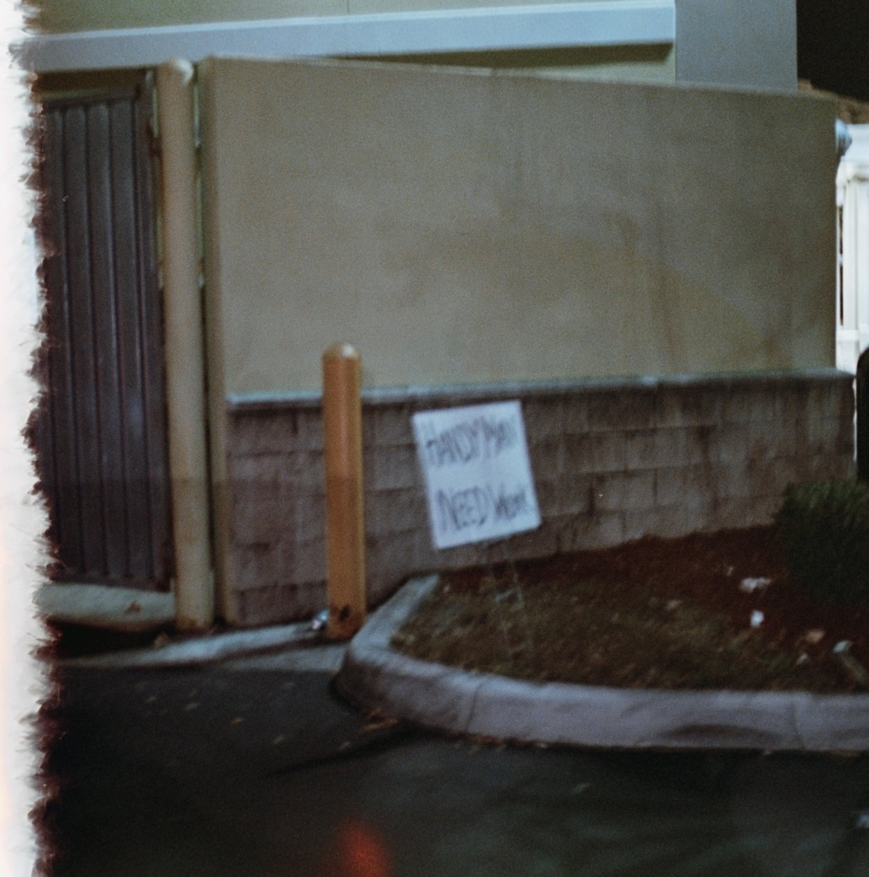 Creepy handy man need work hand written sign.