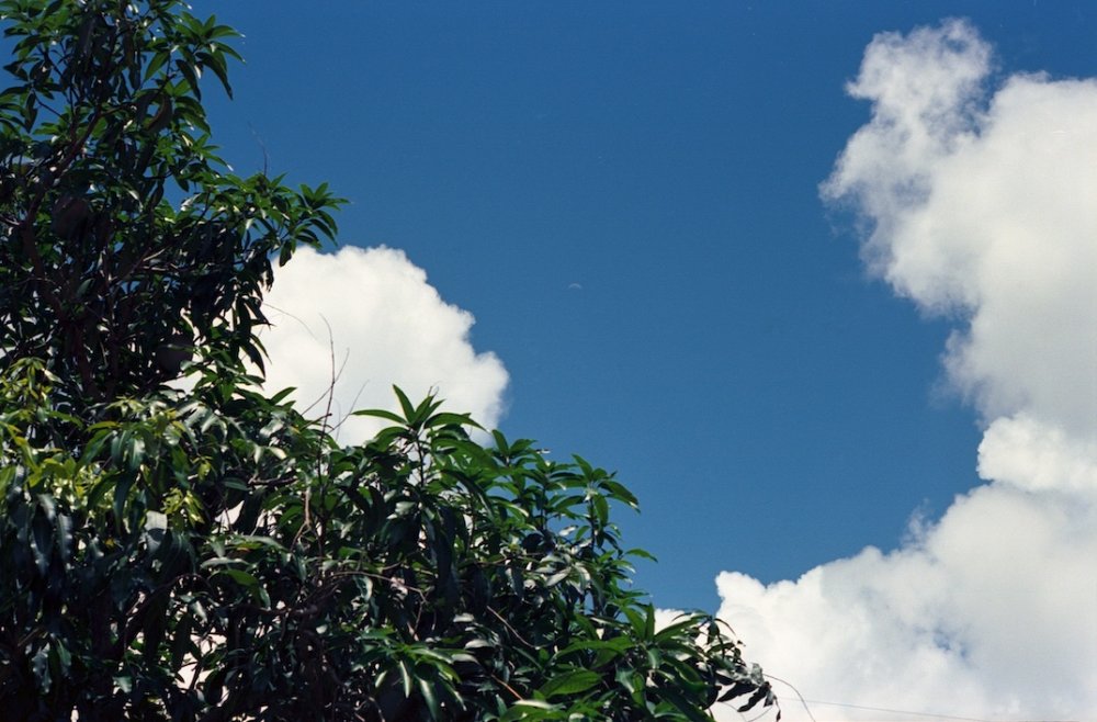 Kodak Ektar 100 doing it's thing, capturing a beautiful sunny day. With soft white clouds and the moon taking a peak.