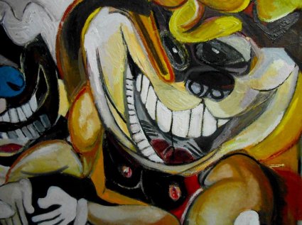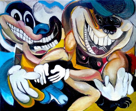 I’ve been making paintings that have a cartoon quality to them…but at the same time they are painted a bit aggressively and not so much in a traditional cartoon graphic style. Some cartoon shapes would make great abstract paintings. Cartoons are a strong force because they grab us as children….so the moment we see them as adults in a serious context we pay a bit more attention because it pulls us to childhood. The only other power to do that are parents. I see it as an extremely powerful tool to say something in painting right now. If it wasn’t I wouldn’t bother. For me it’s just a stage where I’m at right now. It makes sense to me.