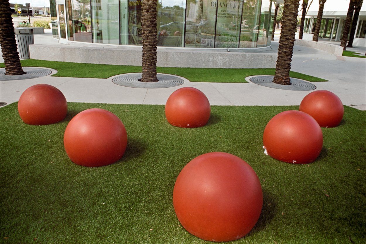 Fake Orange's on fake grass.