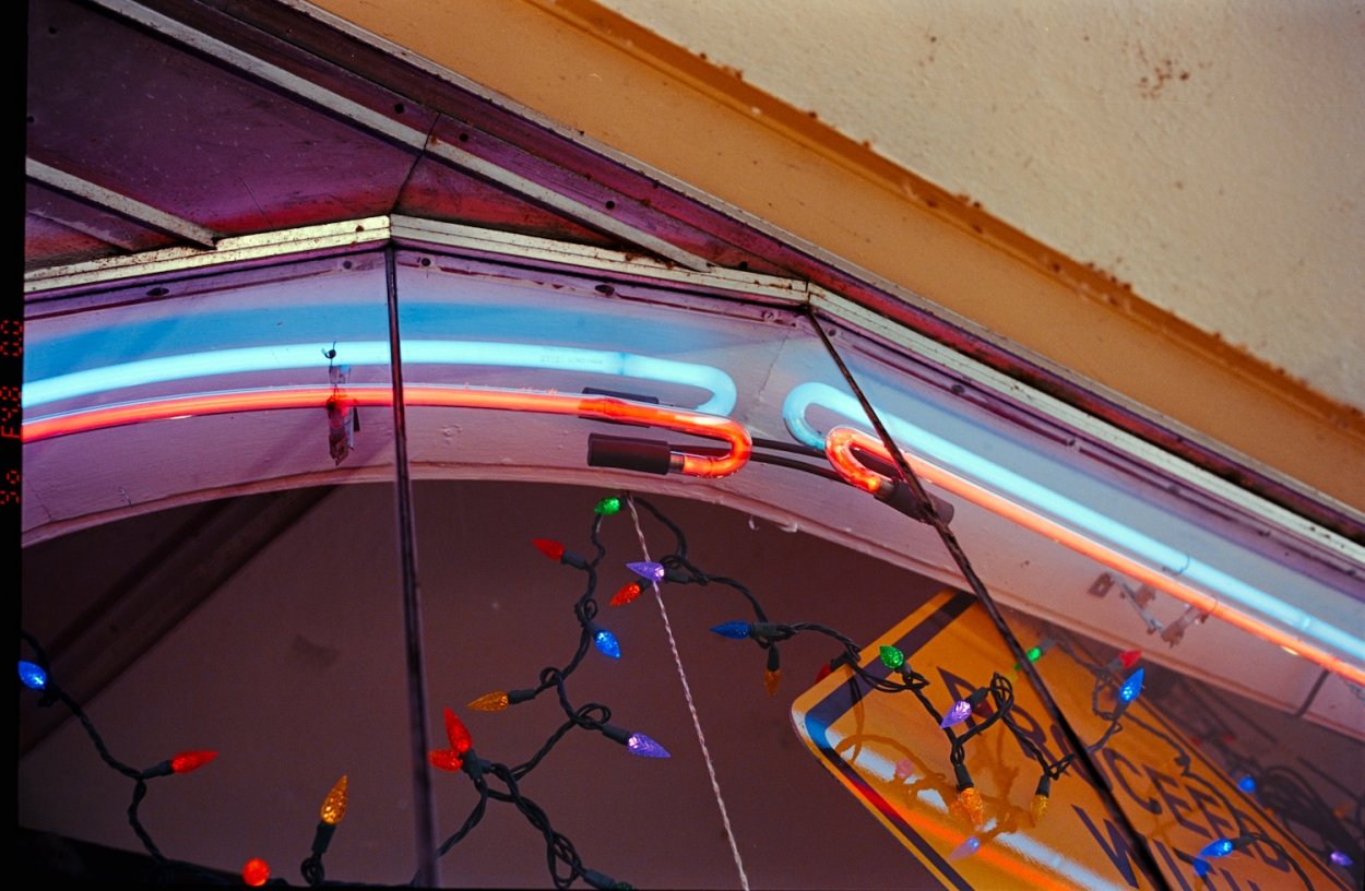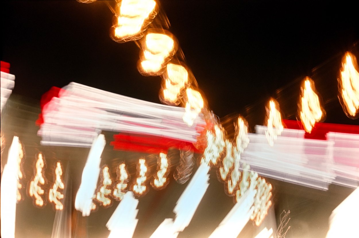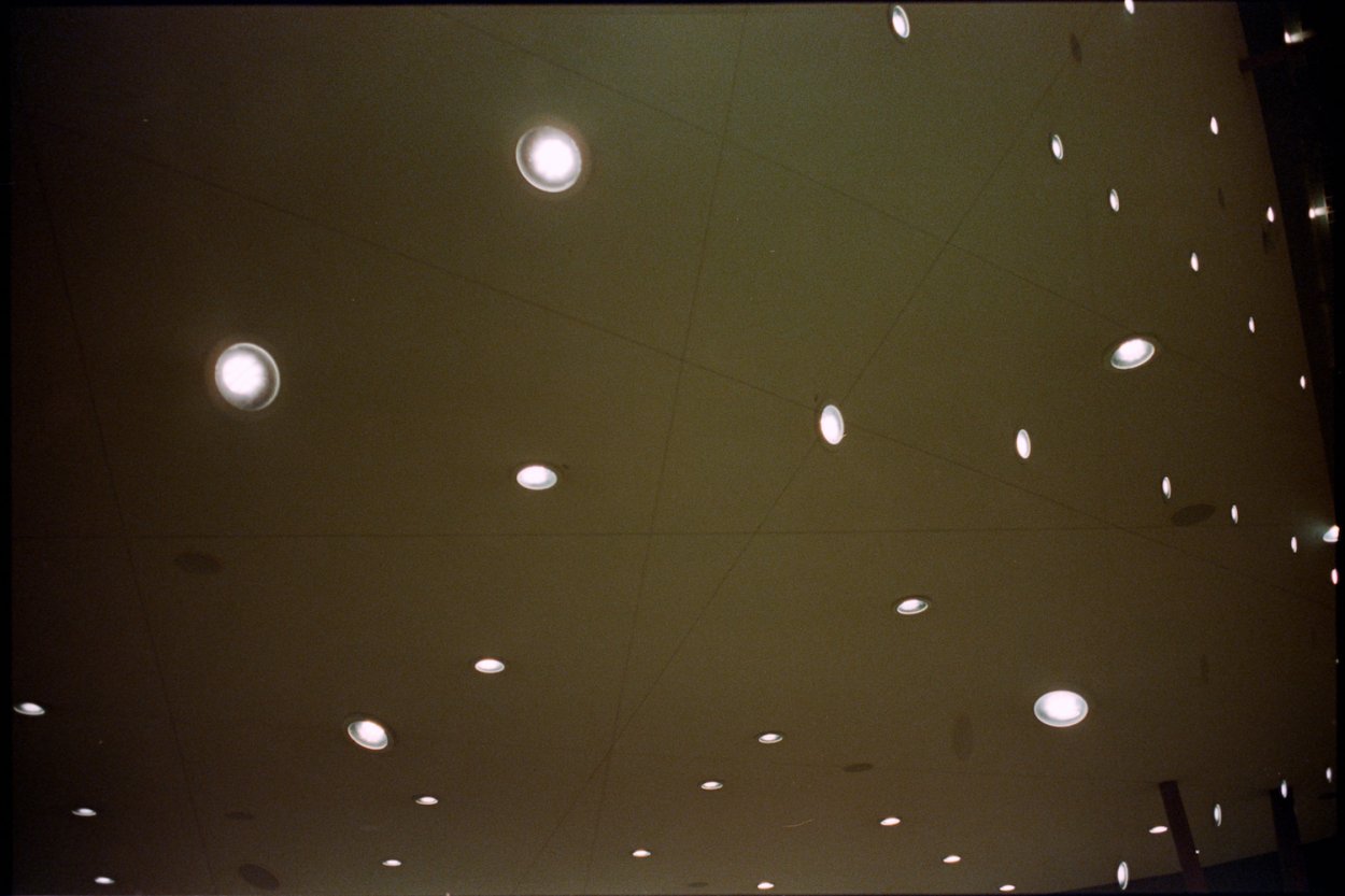 Parking garage light trails on Kodak Portra 800 film.