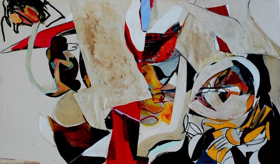 A While Running 2010 - Plaster, latex, ink, oil and spray enamel on canvas