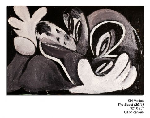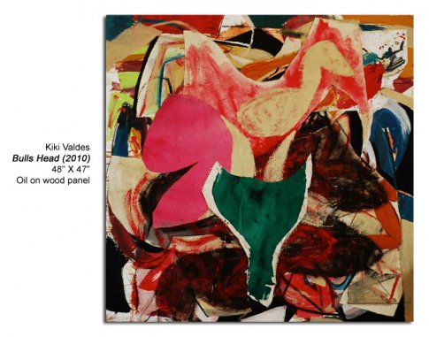 Based in New York, Valdes is a Cuban-American who's work explores the multidimensional complexities of people, religion, American-life, sex, and superstition. His canvases tend to overlap on top of various unresolved paintings and capture a sense of association, rhythm and conflict. The work can best be described as a marriage between abstract expressionism, cartoons and Caribbean folklore.
