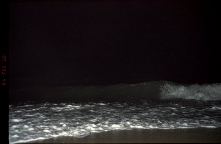 Ocean waves hitting the beach at night.